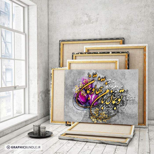 چاپ تابلوی دکوراتیو خطاطی با متن نستعلیق آنی و بیش از آنی با گرافیک تذهیبی