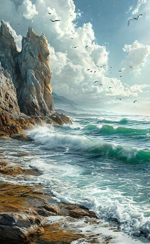 چاپ تابلو دکوراتیو طرح منظره دریا و صخره