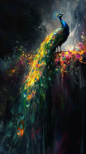 چاپ تابلو دکوراتیو طرح طاووس با پس زمینه تاریک
