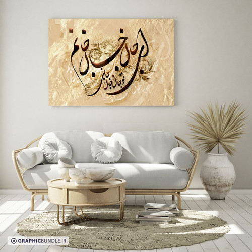 چاپ تابلو دکوراتیو طرح خوشنویسی با پس زمینه کرم