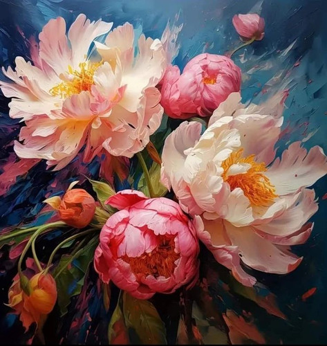 چاپ تابلو دکوراتیو ست سه تکه نقاشی دیجیتال با گل برجسته رنگ روغن