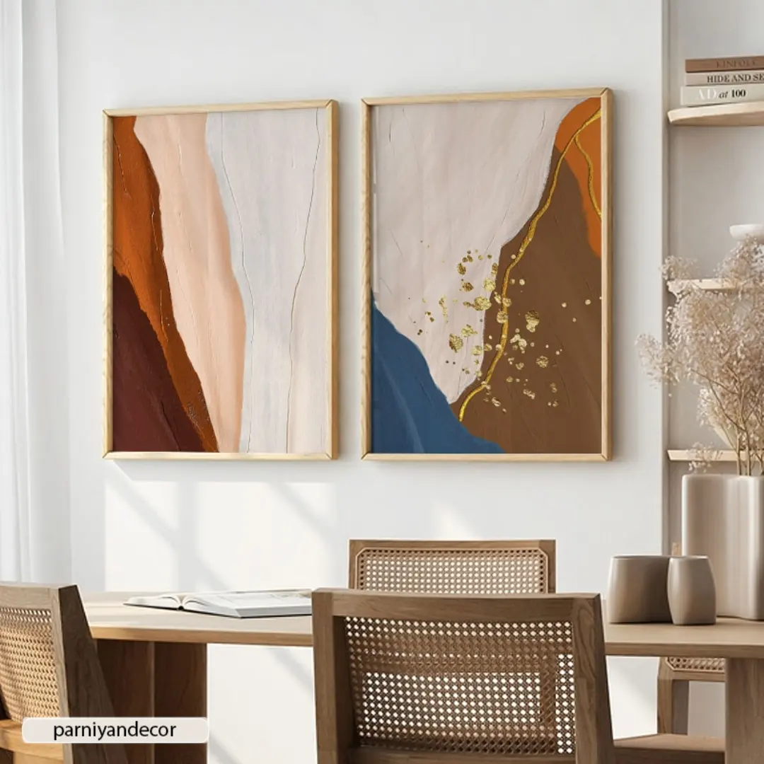 تابلو دکوراتیو ست سه تکه سبک آبسترکت رنگ روغن