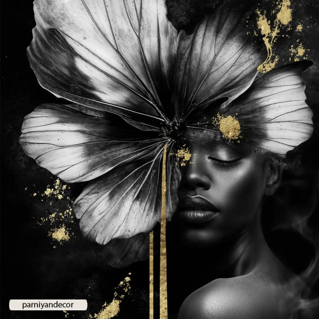 با تم سیاه از دختر و زنان سیاه پوست و گلهای سیاه و سفید و افکت های طلایی