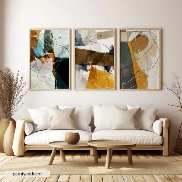 تابلو دکوراتیو سه تکه تکنیک آبسترکت