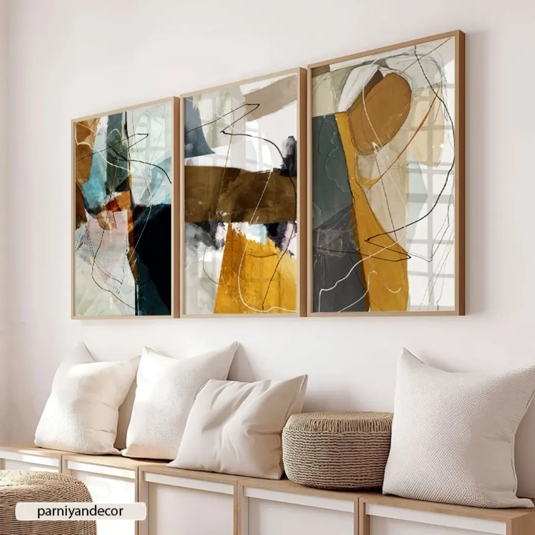 تابلو دکوراتیو سه تکه تکنیک آبسترکت