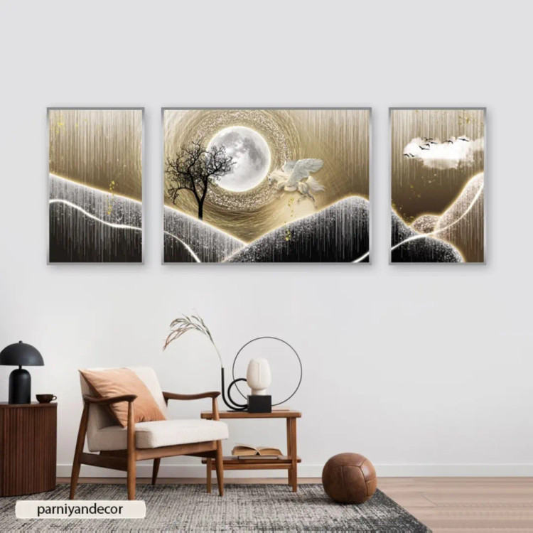 تابلو دکوراتیو ست سه تکه متقارن طرح منظره انتزاعی