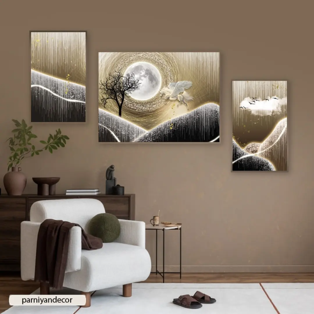 تابلو دکوراتیو ست سه تکه متقارن طرح منظره انتزاعی