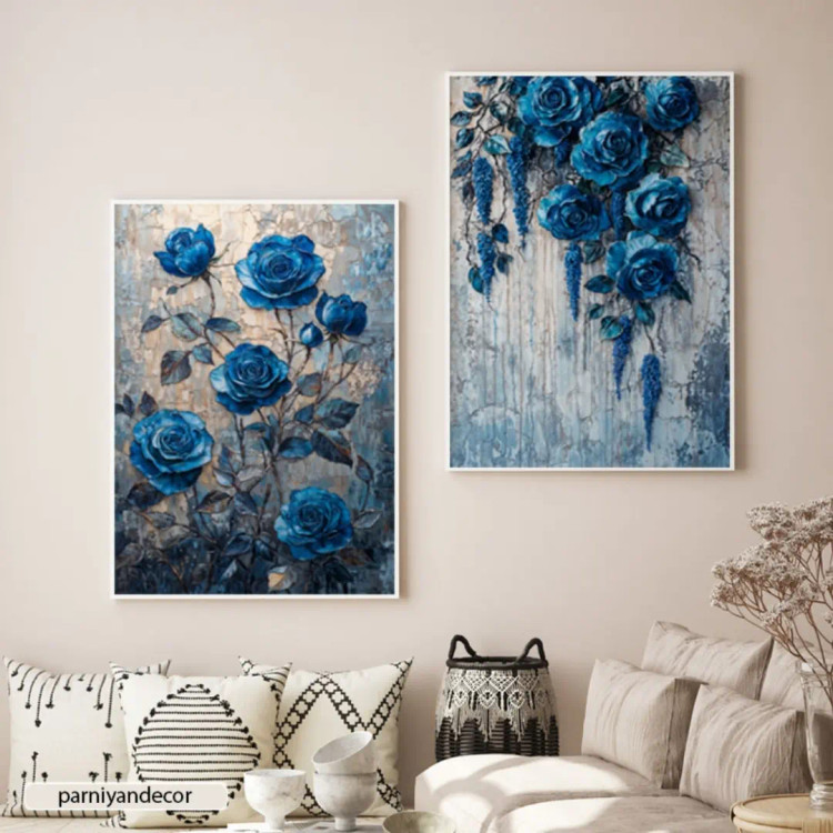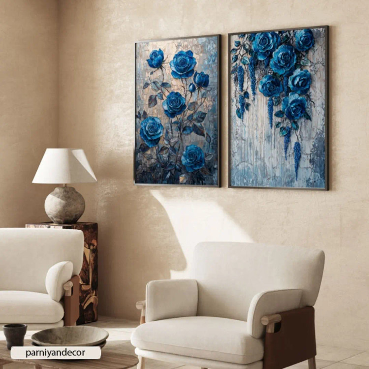 ست دو تابلوی دکوراتیو با طرح گل های رز آویزی.