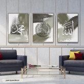 تابلو دکوراتیو ست سه تابلوی آبستره با نوشته های ثلث الله ، محمد و آیت الکرسی
