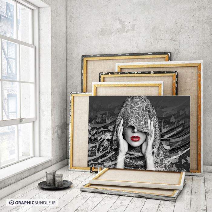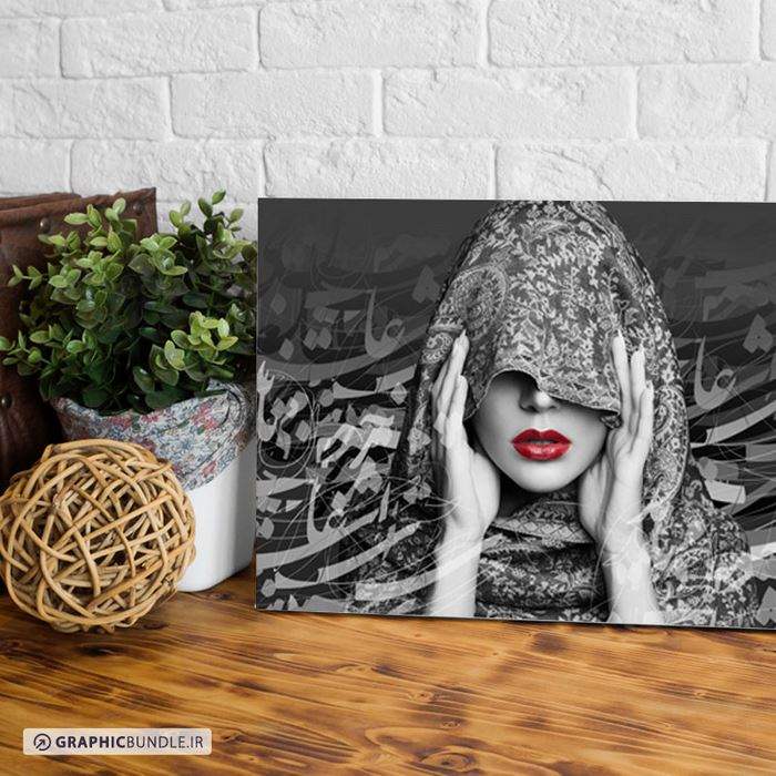 چاپ طرح سیاه و سفید سیاه مشق و خطاطی روی چهره زن با حجاب